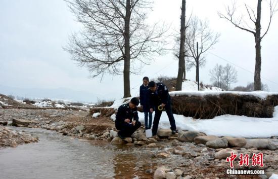資料圖:甘肅渭源縣環保局執法人(rén)員(yuán)在峽口水庫水源地取樣。王綱攝
