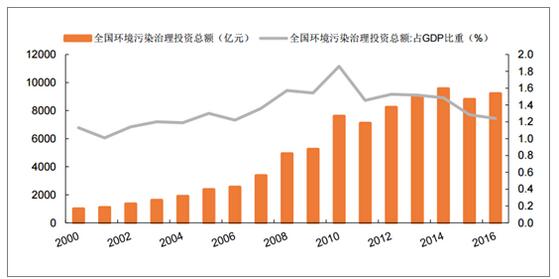 2000-2016年(nián),我國(guó)環境治理(lǐ)投資總額從(cóng)1014.90億元增長至2016年(nián)的9219.80億元,複合增速達14.79%。2016年(nián),我國(guó)環境治理(lǐ)投資占GDP比例爲1.24%。根據國(guó)際經驗,當治理(lǐ)環境污染的投資占GDP的比例達1%~1.5%時,可(kě)控制環境惡化的趨勢,當該比例達到2%~3%時,環境質量可(kě)有所改善。發達國(guó)家在20世紀70年(nián)代環境保護投資占GDP的比例已達2%《全國(guó)城(chéng)市生(shēng)态保護與建設規劃(。2015-2020年(nián))》提出,到2020年(nián),我國(guó)環保投資占GDP的比例不低于3.5%,環保投資仍有很大(dà)提升空間。