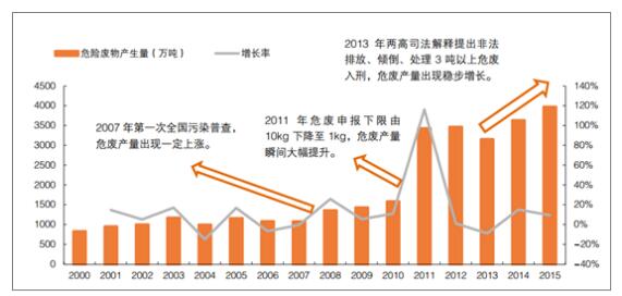 危險廢物處理(lǐ)量呈快(kuài)速增長趨勢