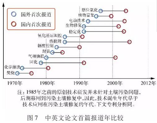 對國(guó)内技術(shù)逐年(nián)的文獻統計(jì)結果來(lái)看(kàn),國(guó)内技術(shù)主要從(cóng)20世紀90年(nián)代開始,先期發展的技術(shù)包括化學淋洗、固定化、氧化/還(hái)原調控等以藥劑研發爲主的技術(shù),以及焚燒、氣體(tǐ)抽提等以設備或工藝引進的技術(shù)。本世紀初,随着國(guó)際植物修複成爲研究熱(rè)點,以及國(guó)内土(tǔ)壤修複相(xiàng)關政策與指導意見(jiàn)的出台,植物修複與制度控制成爲國(guó)内關注的主要技術(shù)。
